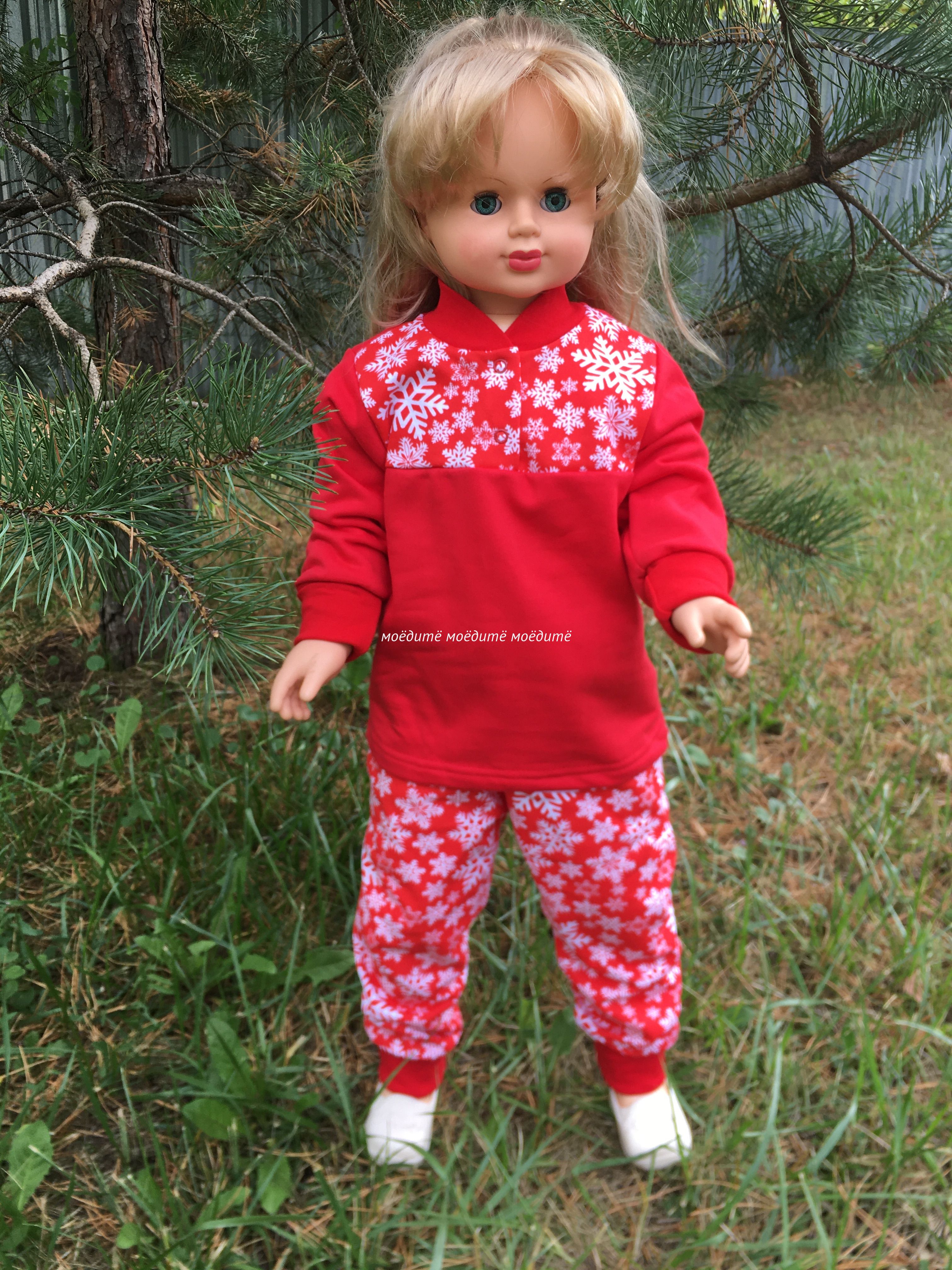 "МоёДитё" костюм домашний футер с начёсом "Снежинки" ПЖ157 красный "Магнолия" в Энгельсе